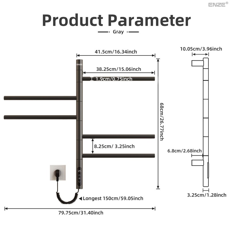 - 【Flexible Installation: Hardwired or Plug-In】 Designed as a hardwired towel warmer or plug-in unit, install this wall-mounted heated towel rack with included hardware and instructions. Great as a towel heater rack or electric towel drying rack for any bathroom setup.