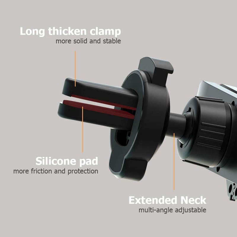 - 「Safe and Stable」ENZIA car phone holder holds your phone securely to the vent. Four arms are fully surrounded, gravity locked, large-area wrapping, stable when placed, easy and fast, zero noise.The clip hook will catch one of the car air vent blades and tightly hang on it.