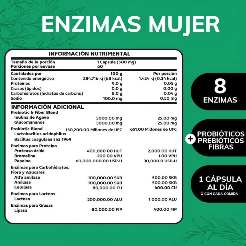 Eficacia Comprobada: La combinación de nuestras 8 enzimas asegura que cada comida se digiera de manera eficiente, ayudándote a evitar la pesadez y el malestar.