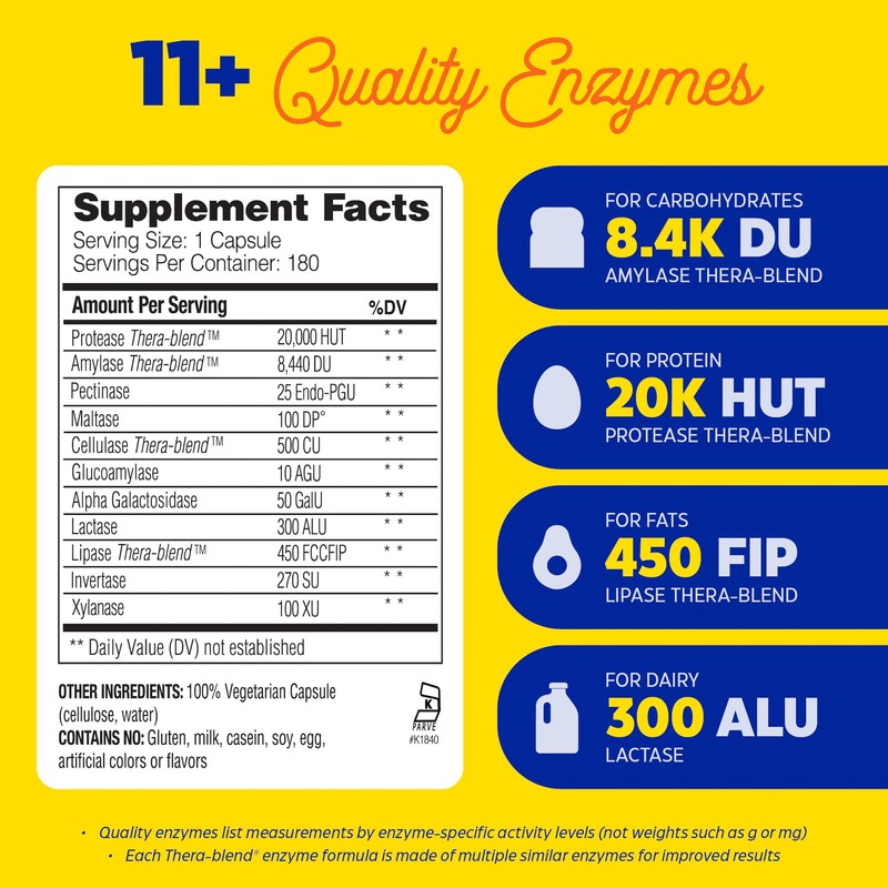 - Powered by thera-blend: Experience faster relief and better digestion thanks to Thera-blend enzymes, formulated to stay active through acidic and neutral environments in the digestive system