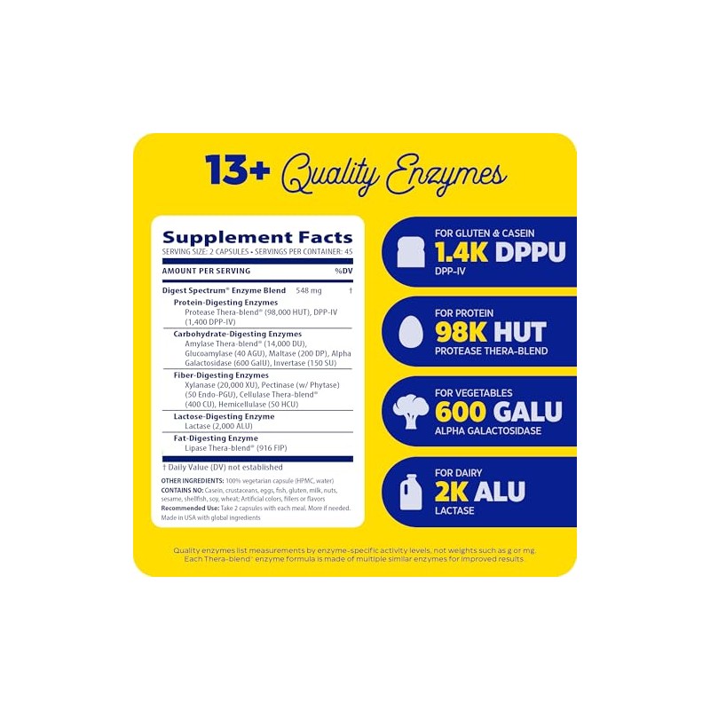- Para la intolerancia al gluten: nuestra mezcla especializada de enzimas digestivas ayuda a digerir los alimentos que contienen gluten y caseína, como queso, trigo, cebada, espelta y centeno