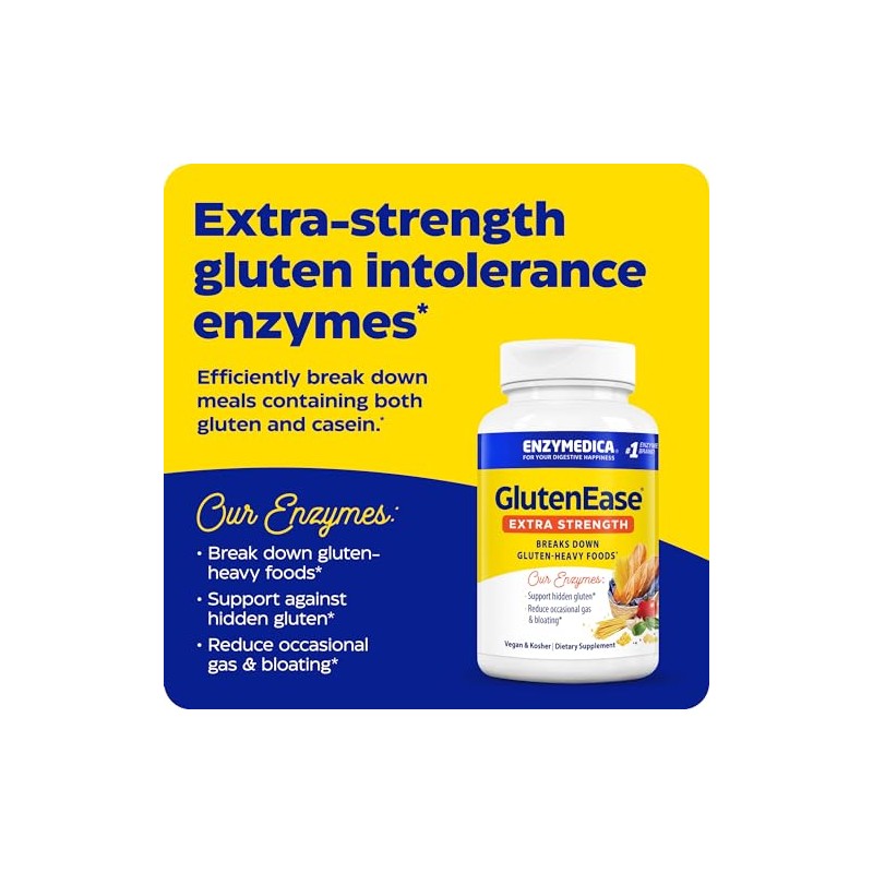 Enzymedica utiliza un exclusivo proceso Thera-blendTM para proteasas, lipasa, amylasa y enzimas de celulasa. Esto significa que cada enzima contiene una mezcla de múltiples cepas. GlutenEase 2X contiene una exclusiva mezcla de proteasa de alta potencia (G2) para una mayor digestión de gluten y carcasa. A diferencia de todas las otras mezclas térmicas, la combinación G2 se mezcla específicamente por su capacidad para mejorar la actividad DPP-IV y aumentar la velocidad y la eficiencia de la digestión de proteínas Gluten.