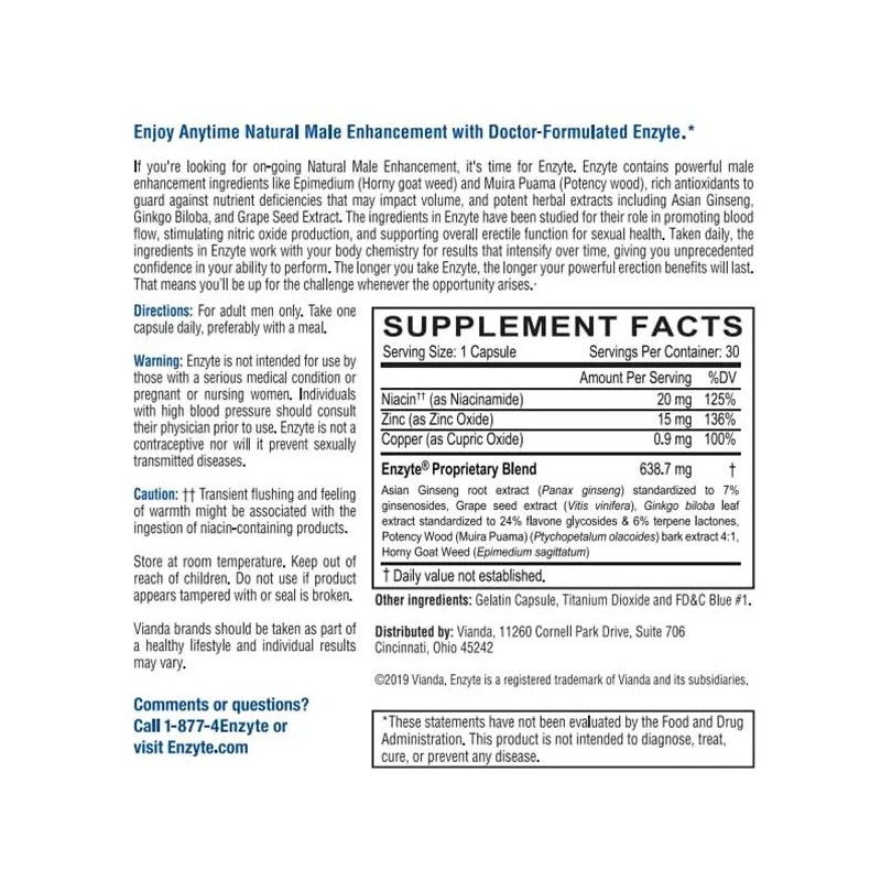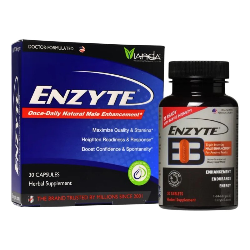 - Enzyte3 ofrece intensidad, resistencia y energía para una experiencia masculina poderosa. Todos los productos Enzyte pueden tomarse juntos para un efecto sinérgico. Libre de lácteos, gluten, soya y no transgénico.