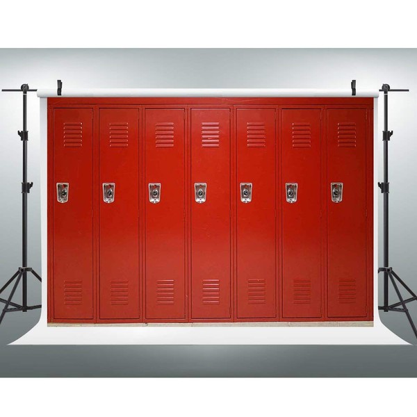 EOA 7(W) x5(H) FT Red Locker Backdrop Sports Gym School Photography Background Basketball Soccer Baseball Hockey - Great for Birthday, Studio, Booth, Party, Events, Portrait Use Photoshoot Props
