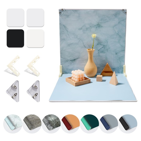 EOAJAFOU 7PCS 16x 16 Inch Backdrop Papers and 2PCS 16x16inch Backdrop Boards, Food, Jewelry, Cosmetics Product Backdrops Flat Backdrops with 2 Bracket and 2 Clips