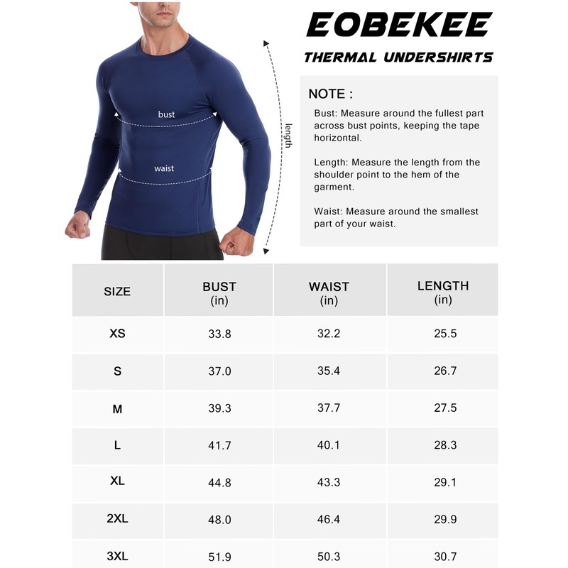 EoBeKee Thermal Base Layer for Men, Long Sleeve Compression Undershirts Athletic Sport Shirts Cold Weather Workout Tops Blue