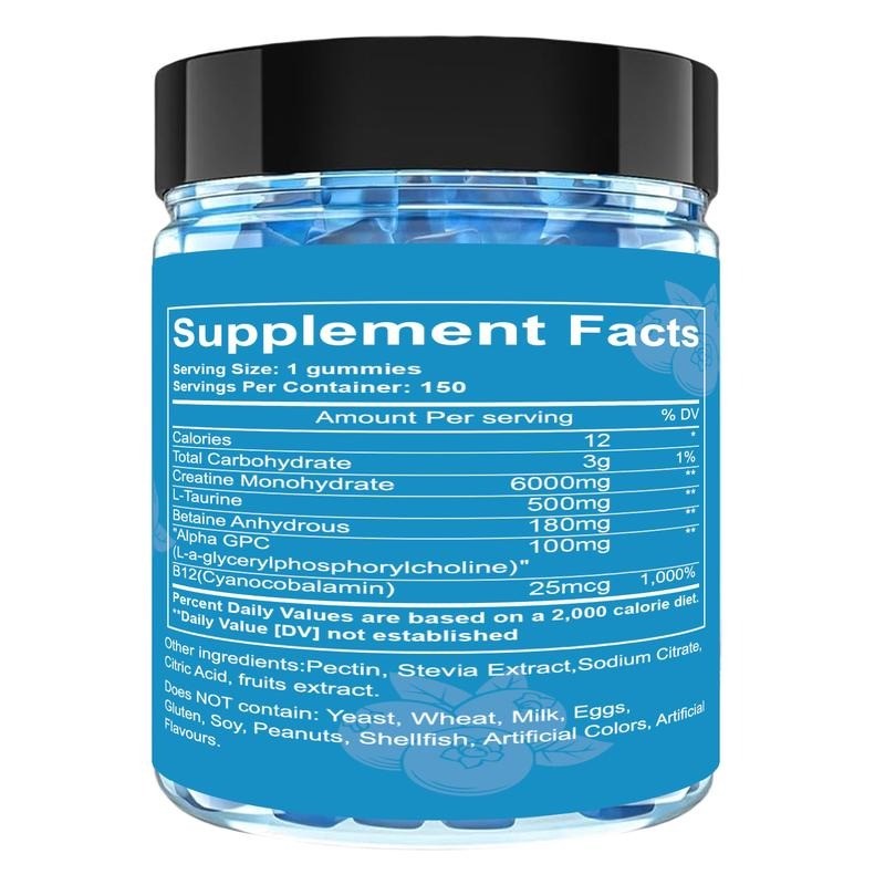 EOCUTE Creatine Monohydrate Gummies – 6g per Serving – Muscle & Strength Support – Blueberry Flavor – 150 Count – Fitness & Dietary Supplement