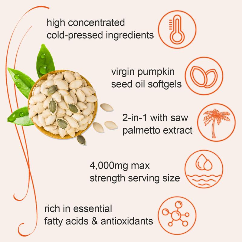 🎃🎃 EOCUTE offers max strength virgin pumpkin seed oil softgels, high concentrated cold-pressed ingredients, 2-in-1 complex with saw palmetto extract, retains essential fatty acids, phytosterols, and antioxidants.