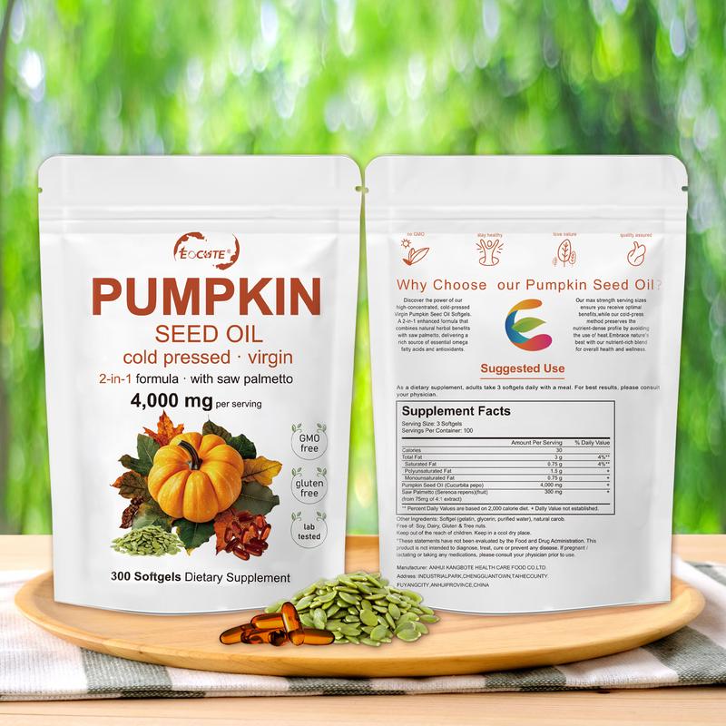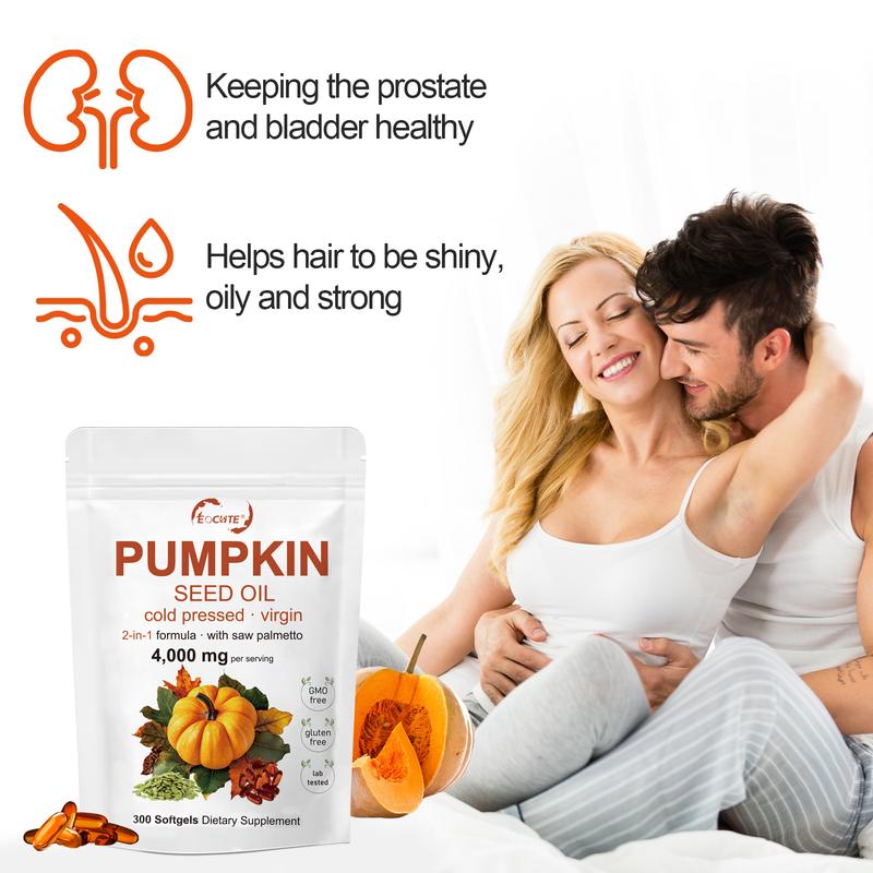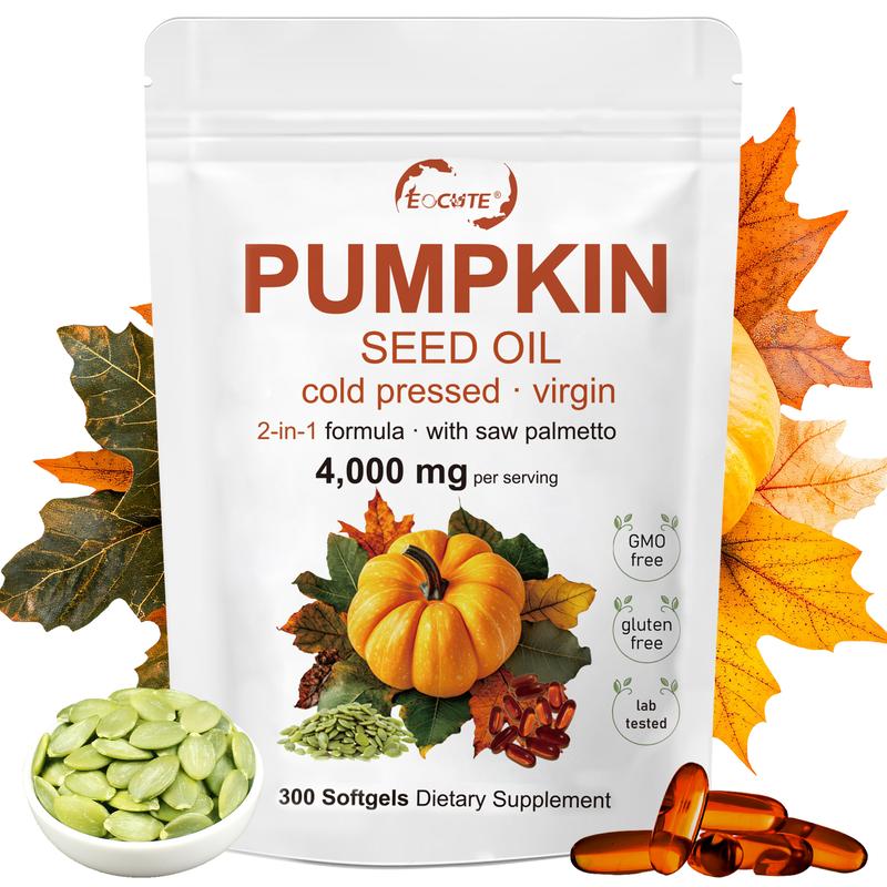 EOCUTE Pumpkin Seed Oil with Saw Palmetto, 4000mg Per Serving, 300 Softgels | Cold Pressed, Pure Virgin Oil, Essential Fatty Acids & Phytosterols | Supports Hair, Urinary, Bladder & Prostate Health | Non-GMO - Specification: 300 Softgels