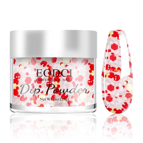 EODCI Color Dipping Powder, Red White Yellow Hexagon Sequins Dip powder No Nail Lamp Long Lasting Dip Nail Colors Nail Starter Professional Nail Art Salon Home DIY 1oz