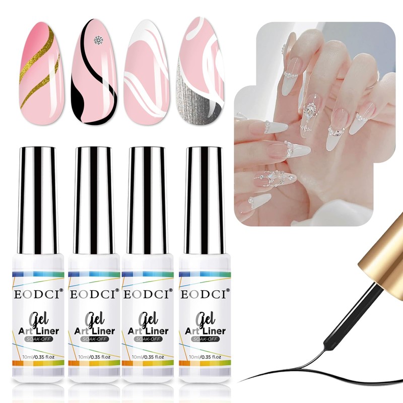 eodci Nail Art Liner Set 4 Pcs Black White Gold Silver Colors Paint Swirl Built Thin Brush in Bottle Soak off Led Lamp Gel Liner Nail Polish Manicure Set