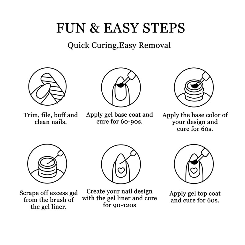 - 【Easy Apply】Each bottle comes with a brush to keep the color neat and clean. The brush is thin, smooth and flexible, able to draw delicate lines with the sharp tip and to color the whole nail with the tilted side. The consistence is thick and is not runny so that the picture can stay sharp when curing.