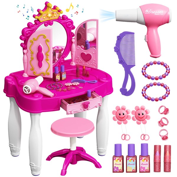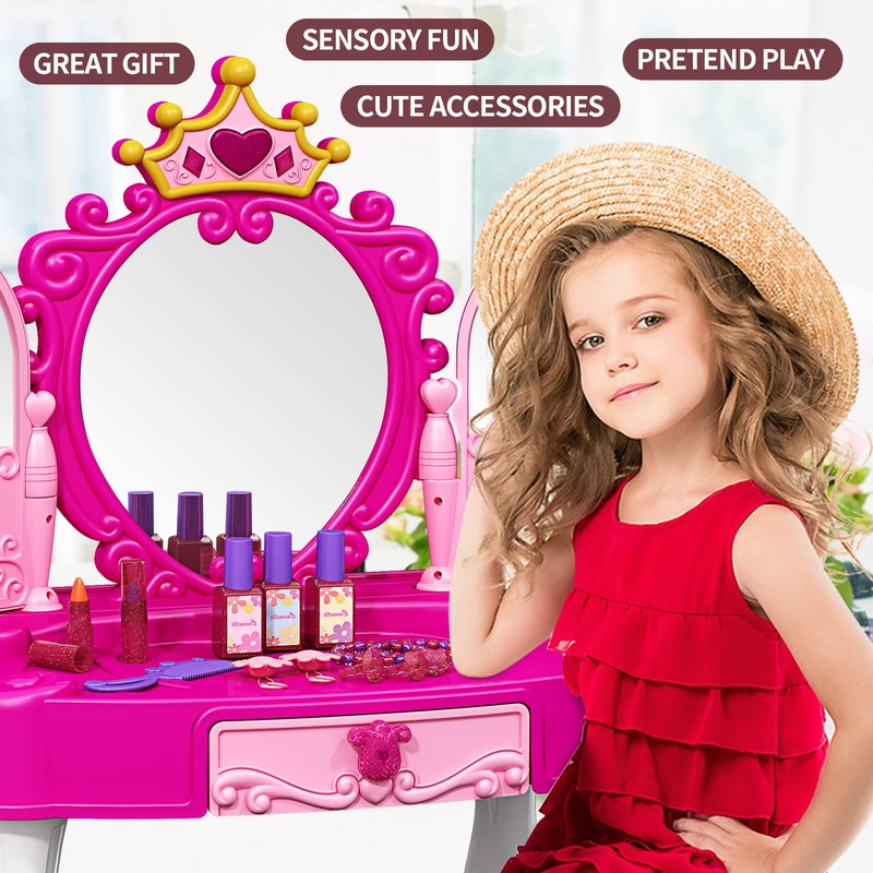 - 【Cultivation of skills】The makeup tool table of girls' dress provides your child with endless imagination and good temperament, and cultivates self-confidence and aesthetic ability. Train fine motor skills and social skills. Kids vanity set are a surprise gift for girls!