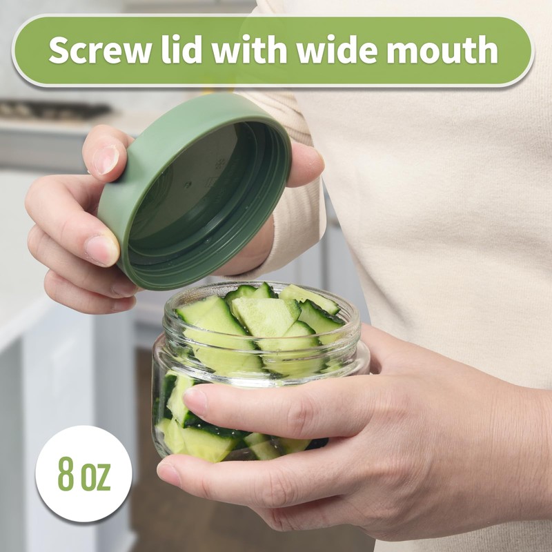 - Airtight Glass Jars with Secure Lids: Our Glass Jars with Lids are designed with an upgraded airtight lid featuring a silicone seal ring, ensuring your food stays fresh for longer periods of time. The extra thick glass and PP plastic lids provide added durability and peace of mind.