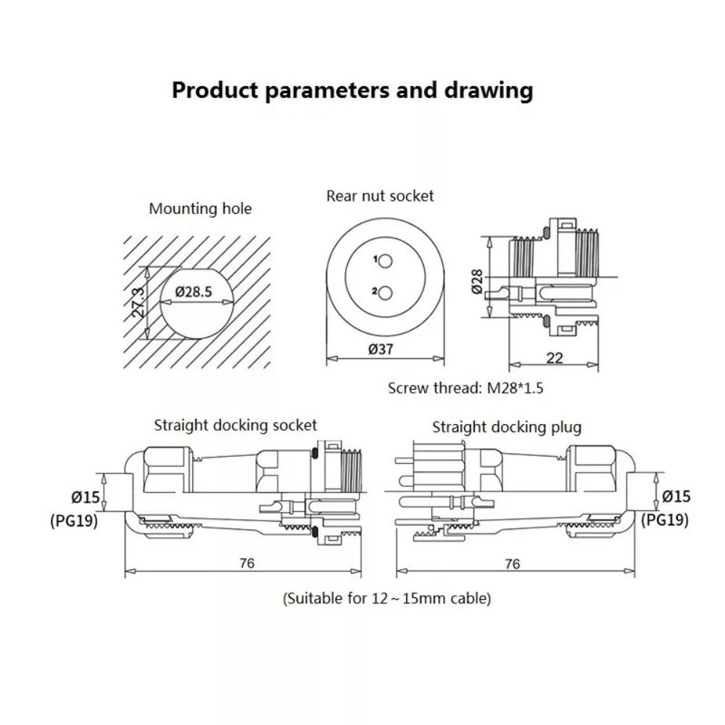 • SD28 IP68 Waterproof Industrial Electrical Cable Connector In-Line Female Socket Aviation Plug.
