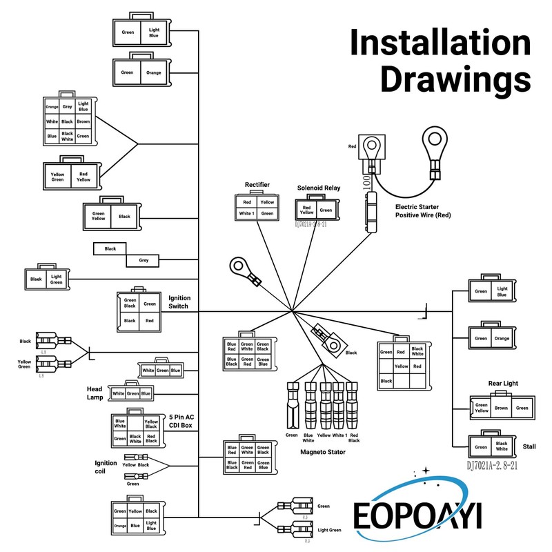 EOPOAYI Complete Wiring Harness Kit Compatible with 110cc 125cc Taotao Coolster Kazuma ATV Quad 4 Wheeler Parts with Ignition Coil Switch CDI Solenoid Flasher Relay Rectifier LED Turn Signal