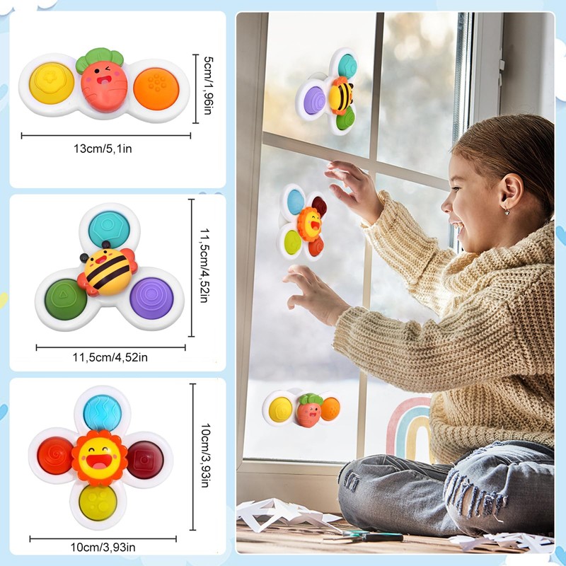 EOPUOZS Suction Cup Spinner Toy, 3 Pieces Suction Cup Toy Baby Spinner with Suction Cup, Table Toy Baby Suction Cup