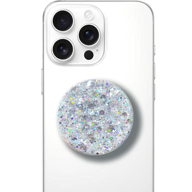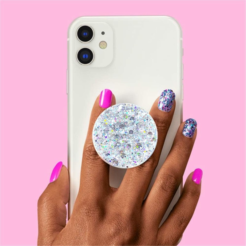 EOQIFJM Foldable Grip, Universal Phone Holder for Phone Handle, 360° Rotation - Clear Shining Star Drop Adhesive Powder (Silver)