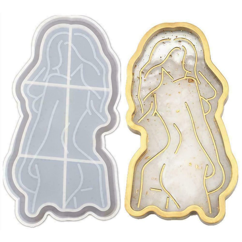EORTA 3 PCS/Set Resin Tray Silicone Molds with Women Body Abstract Paintings Jewelry Holder Mold for Crafts, Decor, Storage, Irregular Shape, 6.2 Inch