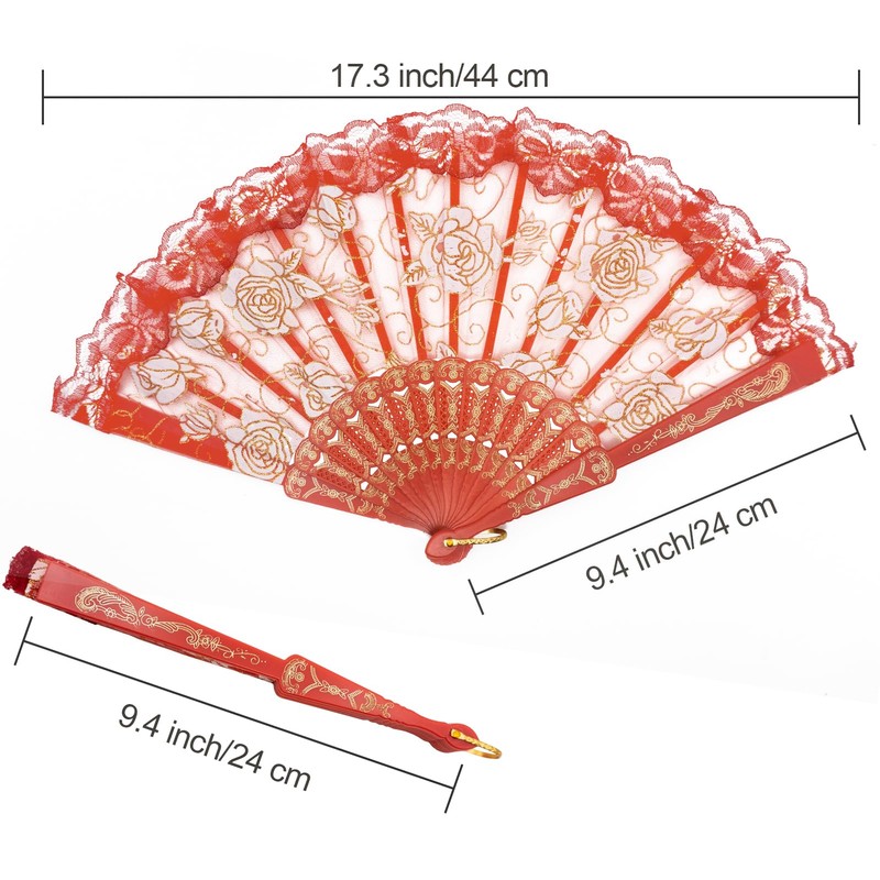 - STYLISH DESIGN: Lace hand fan is made of fabric and plastic frame with gold-plated rose pattern and lace trim, making it look more unique and elegant.