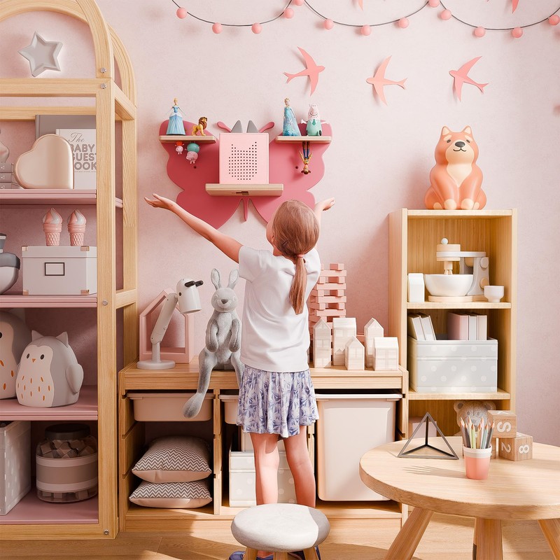- 【Cute Shelf for Tonie】This shelf features a pink design with a cute butterfly pattern making it an eye-catching decoration for a child's room.Our Tonie box shelf is perfect as Toni Shelf and Tonie box holder. The layout design is suitable for storing 8-12 Tonie Figures, providing a neat and organized storage space for children.
