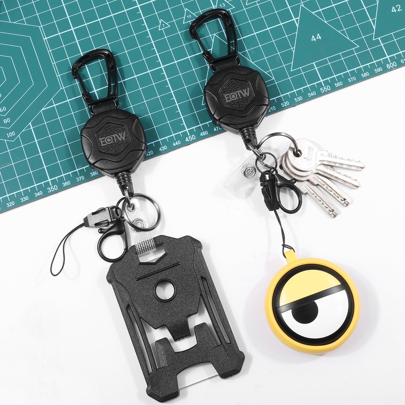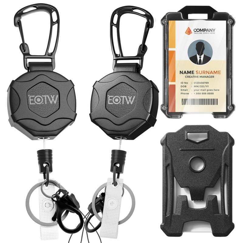 - Lightweight and strong: EOTW carabiner hook keyring uses a climbing buckle with corrosion-resistant coating, tear-resistant parachute cord, ABS housing and built-in extra strong stainless steel spring. PC material badge holder goes beyond by accommodating a maximum of 5 cards.