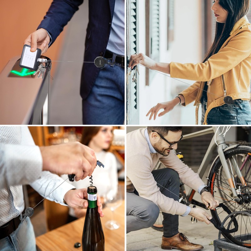 - Easy to carry and flexible: the retractable keychain can be easily attached to your clothes, belt, bags or backpack. The key ring extendable steel cable can be stretched up to 70 cm and is recycled after use with its own powerful turbo feeder. No need to remove the key, employee card and ID card can be used quickly and conveniently.