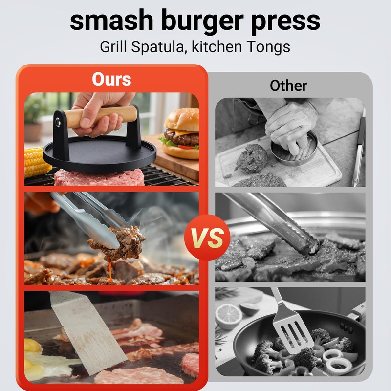 - Ideal Grill Smash Burger Kit : to be your professional skillet matching tool, suitable for outdoor barbecue, camping, home cooking. Your kitchen buddy and great backyard barbecue party buddy. The perfect gift for burger lovers and bacon lovers.