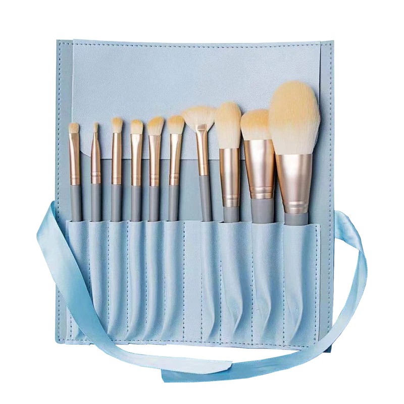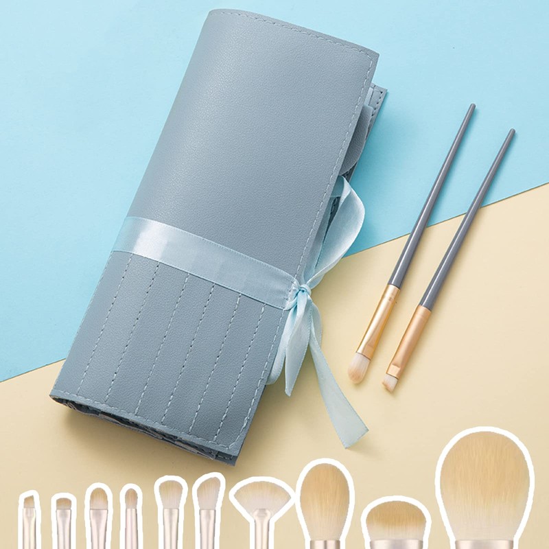 Eowppue Makeup Brush Set - 10 Pieces High-End Makeup Brush Set, Real Techniques Brush Set for Makeup Enthusiasts and Beauty Lovers (Blue & Memory Package)