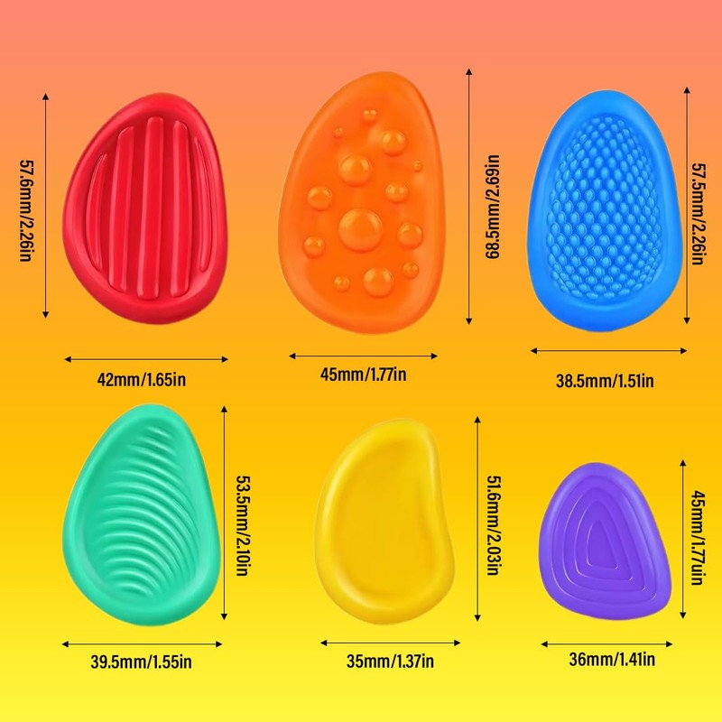 • The soft silicone stones are ideal for keeping hands busy during times of stress and anxiety. Repeated rubbing of these textures helps relieve tension, replaces people's repetitive and unconscious behaviors, satisfies all sensory needs, and helps reduce anxiety and stress in the brain.