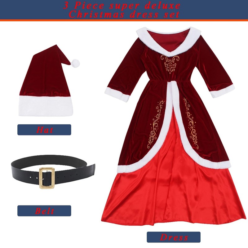 - ✈【High-quality material】The Santa costume is a classic fancy dress for the Christmas party, this Christmas costume can be worn by both men and women. Material made of high quality velvet, soft, good stitching, perfect for winter.