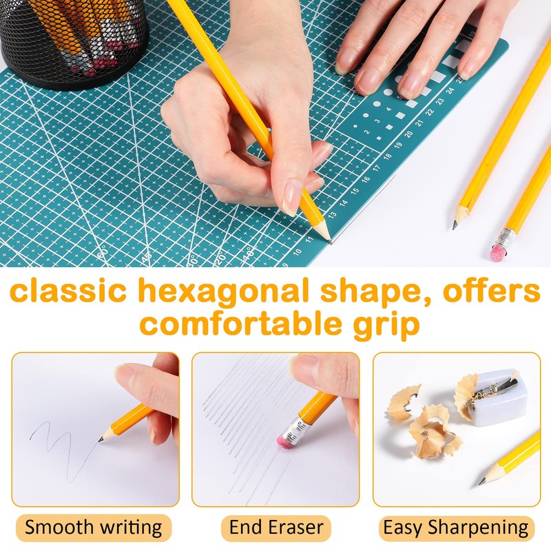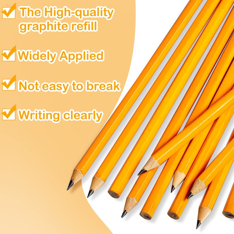 • Soft Erasers Without Latex: each unsharpened pencil comes with a soft eraser in the end, which makes it easy to quickly and cleanly wipe away pencil marks; The eraser is serviceable for long time, reliable and safe for kids and adults