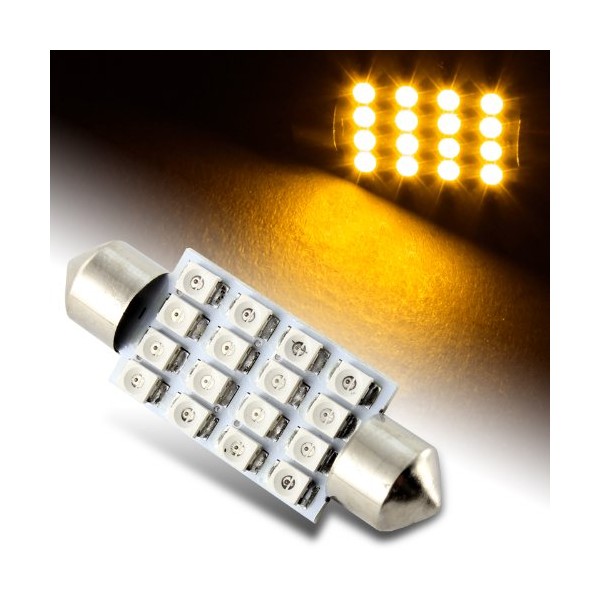 EPARTS 1 X 41mm 16 SMD Amber LED Car Interior Festoon Dome Map Glove Box Trunk Replacement Light Bulb