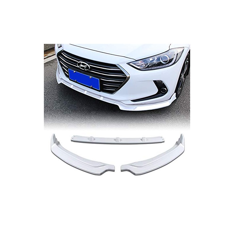 EPARTS 3 Pieces Style White ABS Front Bumper Lip Spoiler Side Body Kit Trim Protection Compatible with 2017-2018 Hyundai Elantra