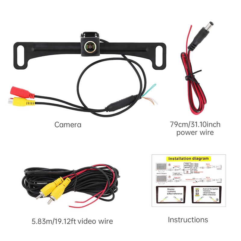 - License Plate Mount Backup Camera with 6M RCA Cable: This camera features a long 6-meter (approx. 20 ft) RCA cable. It works with factory-installed car screens (OEM) and any aftermarket monitors that have an RCA video input. Note: Not compatible with dash cams, mirror monitors, or GPS devices.