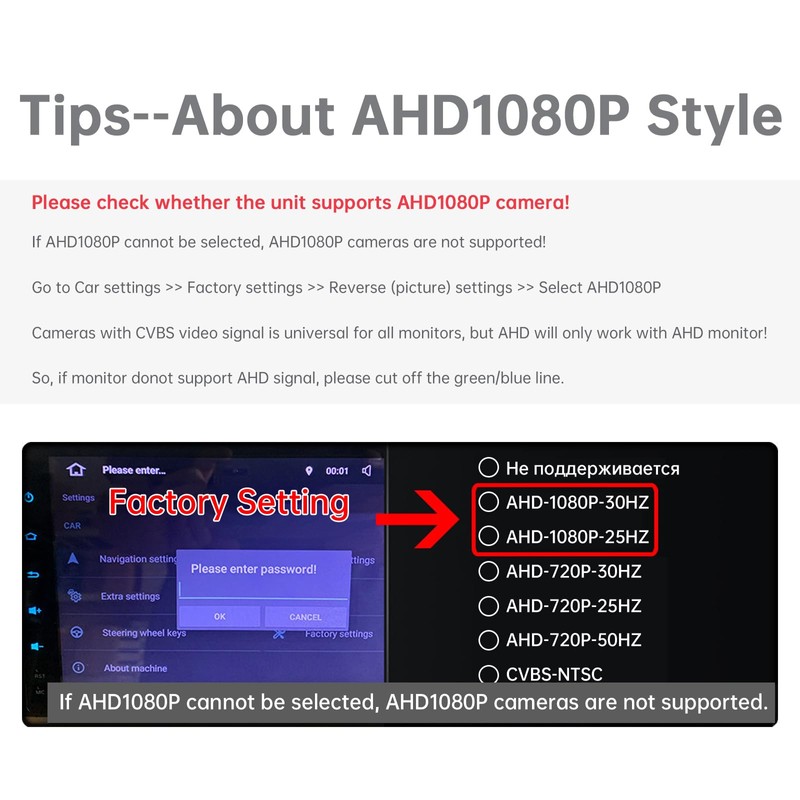 - Supports AHD/CVBS signal switching, adjustable guidelines, and mirror/normal mode flipping for versatile customization. Delivers sharp 1080p resolution.