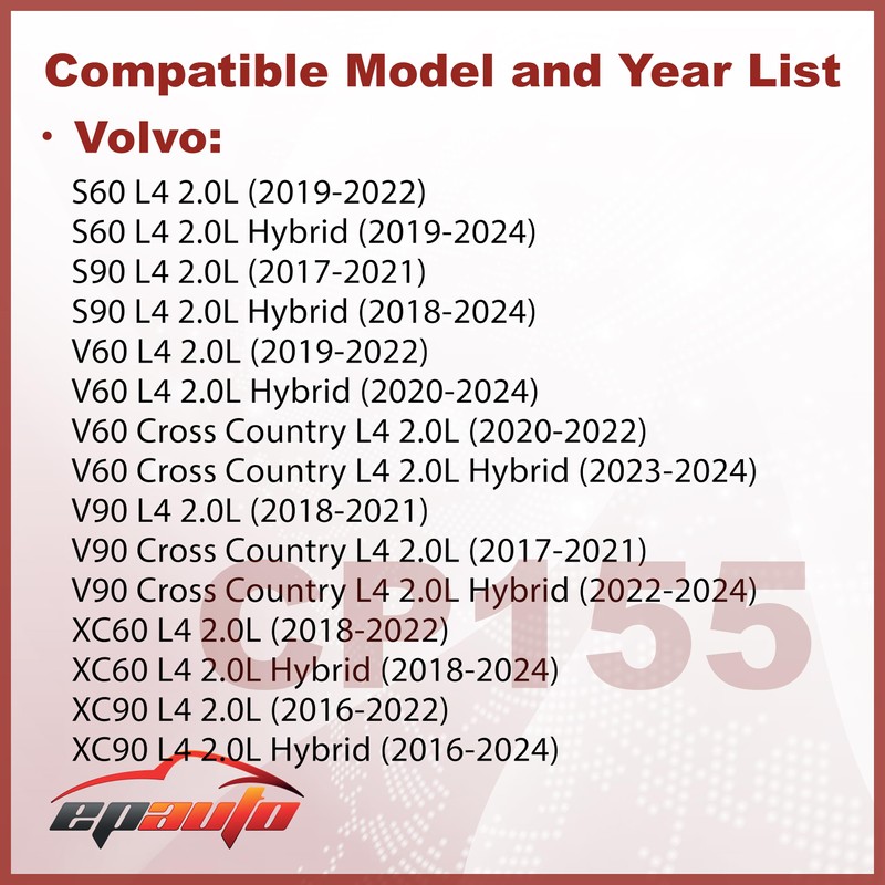 - Compatible with Volvo: S60 (2019-2025), S90 (2017-2025), V60 (2019-2025), V60 Cross Country (2020-2025), V90 (2018-2021), V90 Cross Country (2017-2025), XC60 (2018-2025), XC90 (2016-2025)