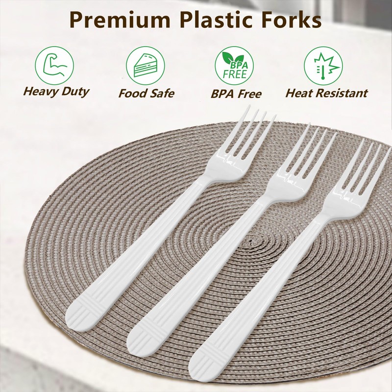 - Heat-Resistant Design, Perfect for Hot Foods: These heavy-duty plastic forks are designed to withstand high temperatures, ensuring they won’t bend, deform, or melt, even with hot foods. Enjoy a worry-free dining experience every time.