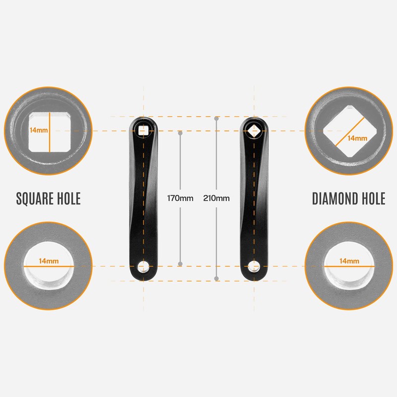 - NOTE 1: Please check the interface of your original crank arm is square or diamond(Please refer to product pictures). Keep both left and right arms have the same hole;Some GYM bikes may not be available, please confirm the length and connection port;