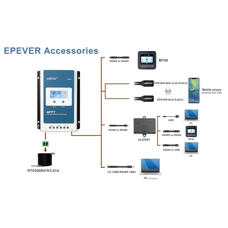 - Compatible Products:This product is for EPEVER brand XTRA,Triron,Tracer-AN(10-40A),Tracer-AN(50-100A),IPower-Plus,IPT,HPS-AL,HPS-AHL,UPower-Hi,Tracer-CPN series products.