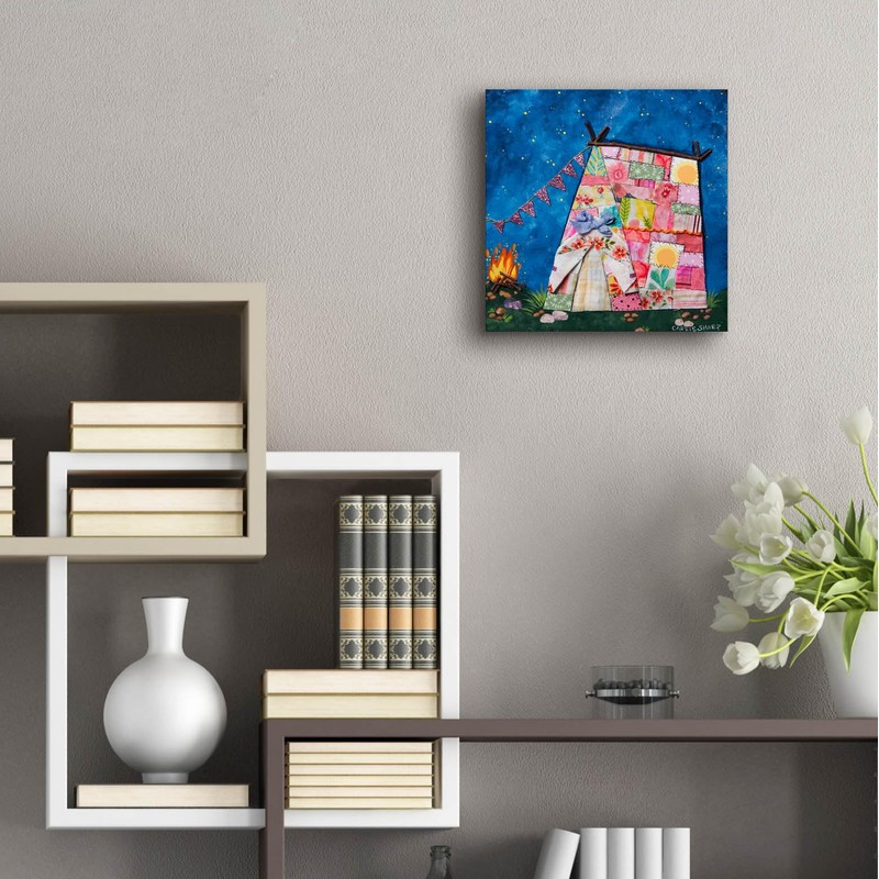 Epic Art 'Nightime By The Fire' by Carrie Sharp Acrylic Glass Wall Art, 12" x 12"