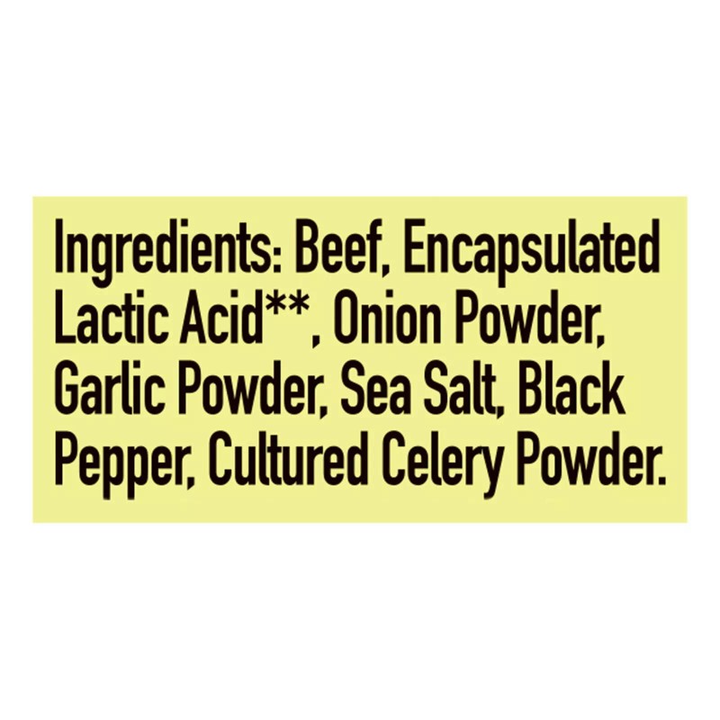 • Ingredients: 'Beef;Encapsulated Lactic Acid;Onion Powder;Garlic Powder;Sea Salt;Black Pepper;Cultured Celery Powder