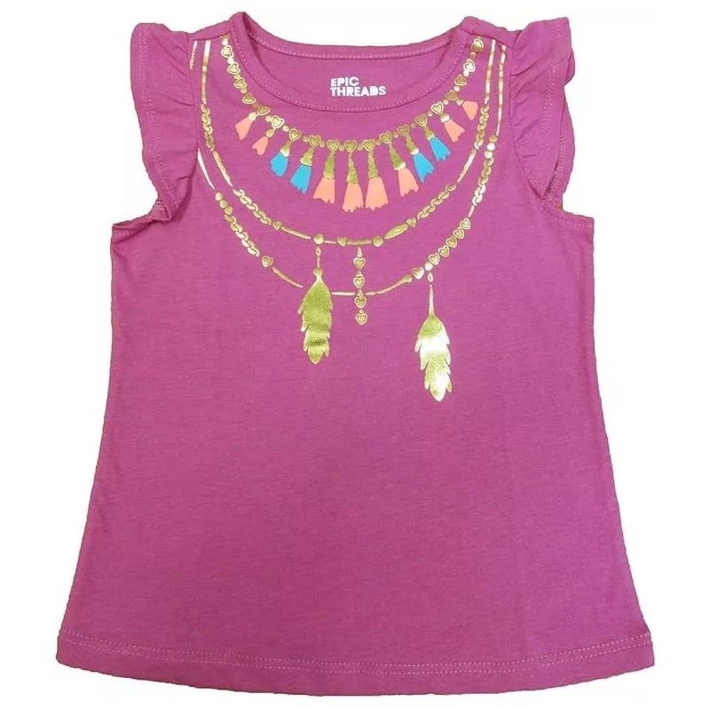 Epic threads Girls' Pink Flutter Print T-Shirt 3T 36-38" 30-32Lbs