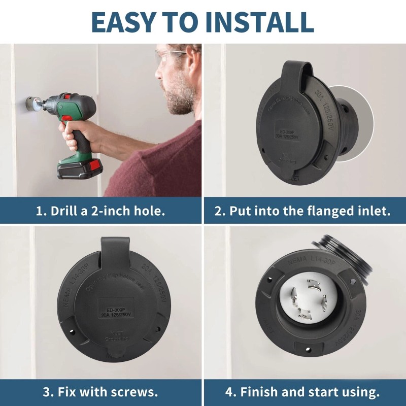 - Simple Installation - - 2" drilling hole needed, then put the inlet receptacle into the hole and fix it with screws (3 free screws are included), No gap on the edge