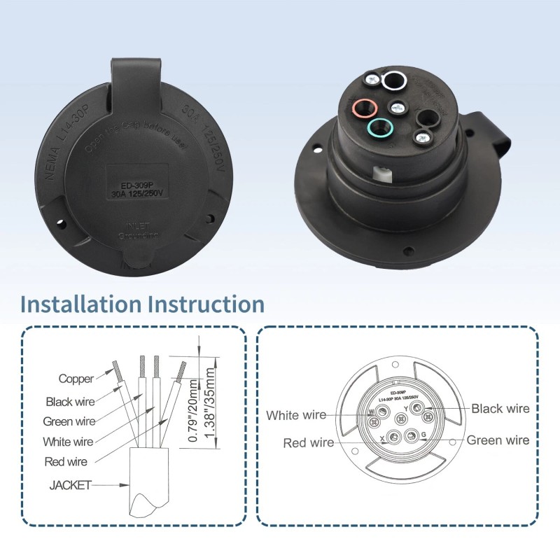Epicord 125/250V 30A NEMA L14-30P RV Power Inlet Plug for RV Camper Trailer Boat US