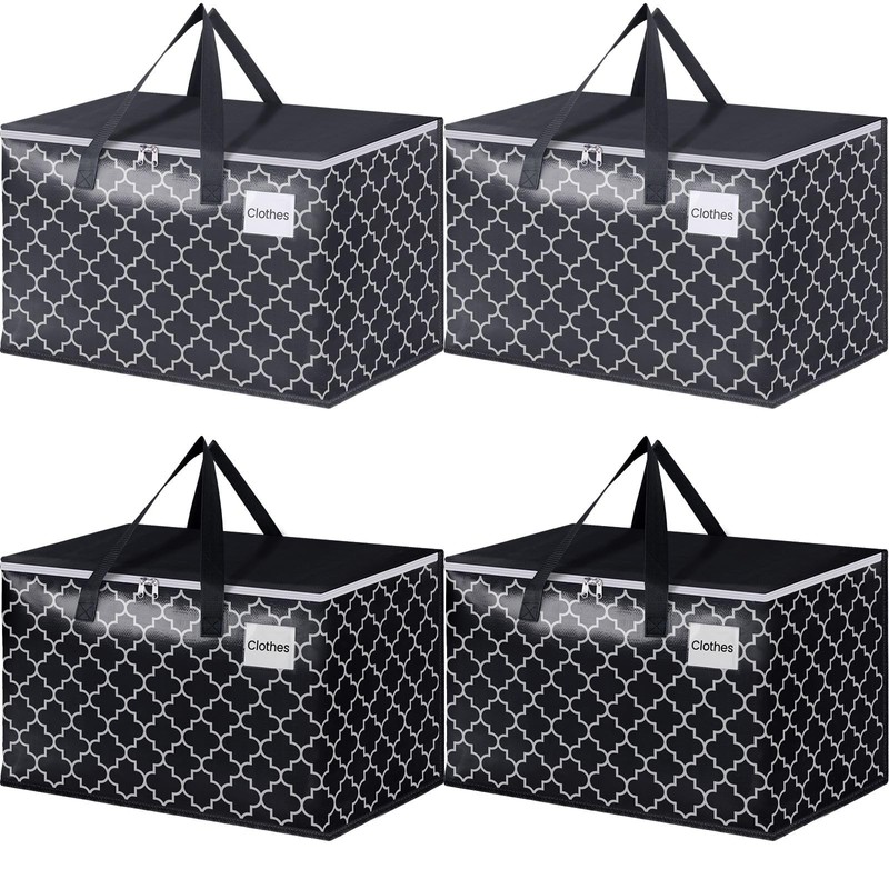 EpicTotes Extra Large Moving Bags, Heavy-Duty Storage Totes with Zipper Top and Sturdy Handles, Moving Supplies for Space Saving and Packing, Collapsible Storage Bags, Black & Gray, 125L, 4-Pack