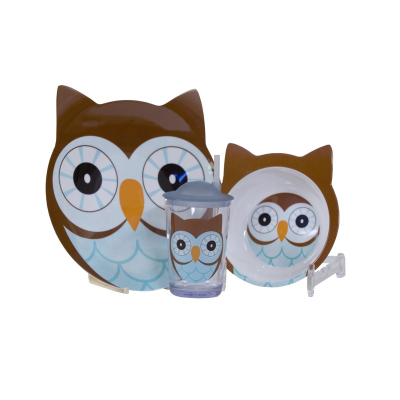 Epicurean 39RQ8111OW Melamine Friendly Faces Owl Design Bowl, Brown/Blue, 16 x 15 x 5 cm