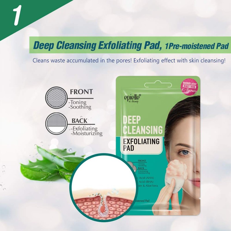 - 💚 Deep Cleansing Exfoliating Pad cleanses and exfoliates to tone and sooth skin with Glycolic Acid (AHA) and Salicylic Acid (BHA) to remove makeup and impurities without dryness or irritation.
