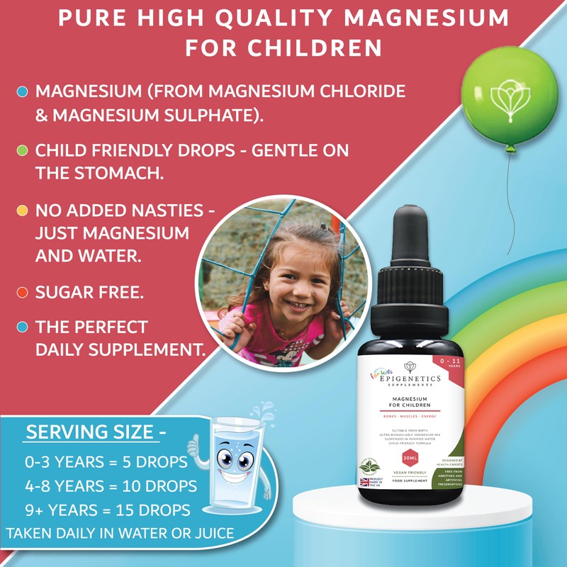 - SPECIALLY FORMULATED FOR KIDS (0 TO 11 YEARS) - Designed for babies, infants, and children, this ultra-pure Magnesium liquid by Epigenetics ensures your little one gets the Magnesium they need for their bones, teeth, and energy production.
