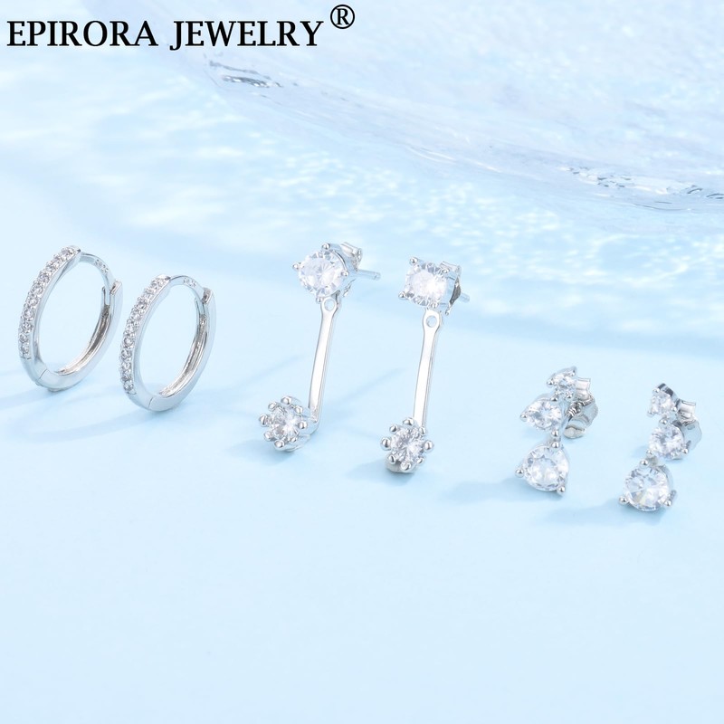 - 【Must-Have Jewellery Set】The EPIRORA silver earring set features AAAA+ cubic zirconia designs set in earrings that capture the dazzle from any angle. This stylish and unique sterling silver stud & earring set will add glamour to your appearance and bring endless inspiration to outfits.